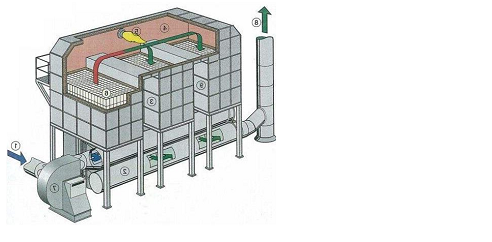 2.氧化產生的高溫氣體流經特制的陶瓷蓄熱體,使陶瓷體升溫而“蓄熱”,下個過程是廢氣從已經“蓄熱”的陶瓷經過,將陶瓷的熱量傳遞給廢氣,有機廢氣通過陶瓷作為換熱器載體,反復進行熱交換,從而節省廢氣升溫的燃料消耗,降低運行成本,熱回收效率高達95%。