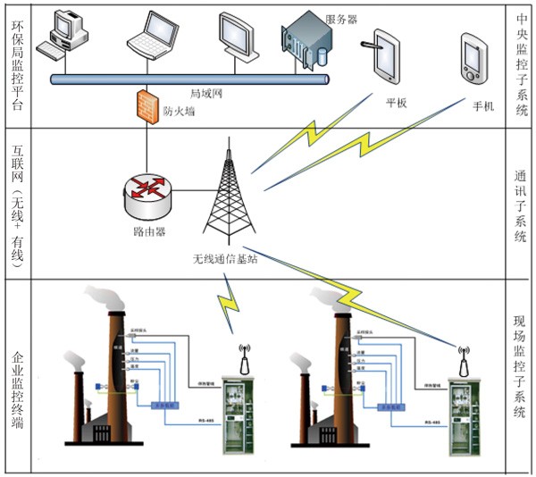 該系統(tǒng)主要由采樣單元、預(yù)處理單元、VOCs測(cè)量分析單元、溫壓流測(cè)量分析單元、數(shù)據(jù)傳輸單元、LED屏顯示單元組成,實(shí)現(xiàn)煙囪廢氣排放參數(shù)的監(jiān)測(cè)、展示、數(shù)據(jù)上傳,完美對(duì)接政府監(jiān)測(cè)平臺(tái),從而實(shí)現(xiàn)車間廢氣排放的2小時(shí)在線監(jiān)測(cè)。